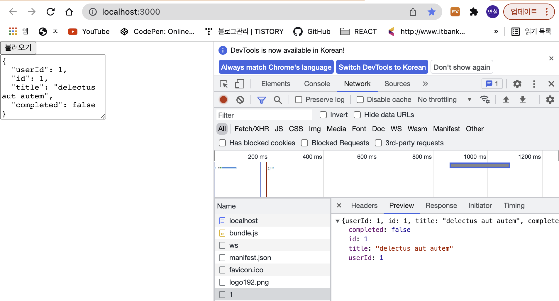 정상적으로 호출된다면 아래와 같이 API를 서버에서 받아오는지 확인 해보자