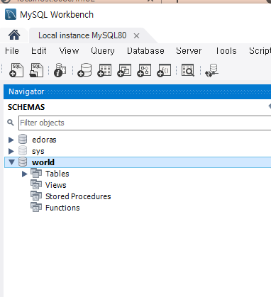실행하면 아래와 같이 테스트용 world db가 생성된다