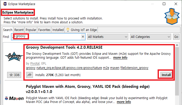 Groovy plugin을 아래와 같이 Marketplace에서 설치한다.